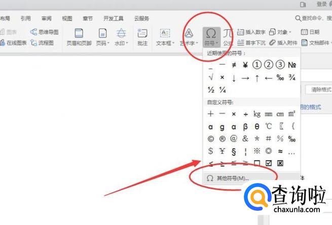 打开一张Word文档,在任务栏中点击【插入】,然后在下方找到【符合】,如下图所示: