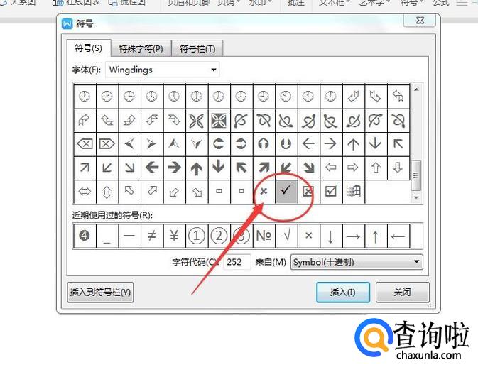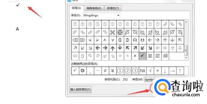 选中【√】之后,点击右侧的【插入】按钮,即可把【√】插入到Word文档中,如下图所示: