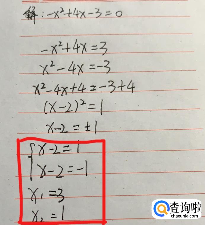 以-x2+4x-3=0为例。