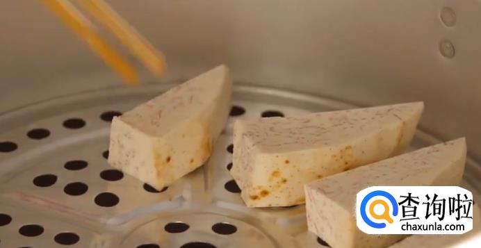 之后上锅蒸45分钟至蒸熟后取出捣碎。
