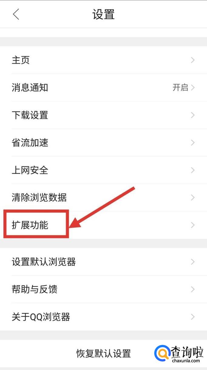 在设置页面可以找到扩展功能,进入扩展功能页面。