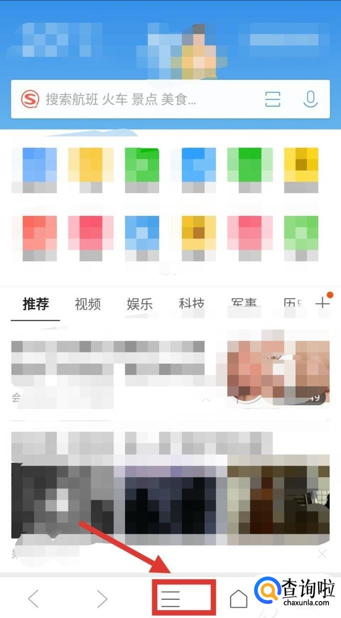 首先打开QQ浏览器这个软件,进入首页后看到如图所示的图标。