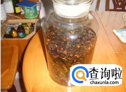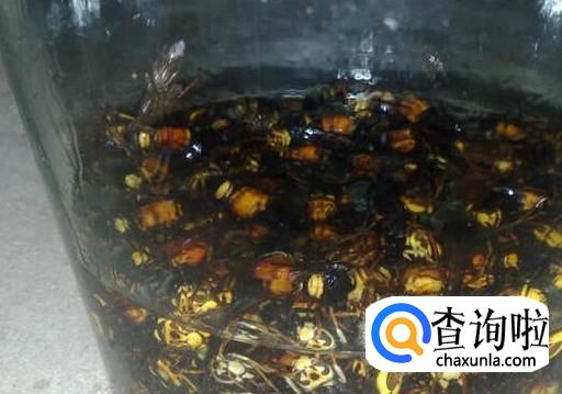 然后将黄蜂倒入到塑料酒瓶中,黄蜂数量大概在玻璃酒瓶的四分之一处即可,然后再倒入一些米酒,将酒瓶灌满。