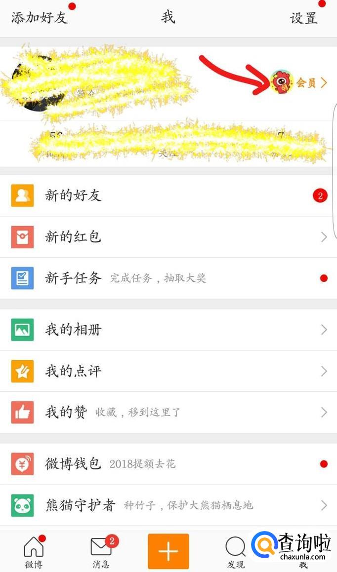 或者在微博个人中心,从图示箭头处点击进入。