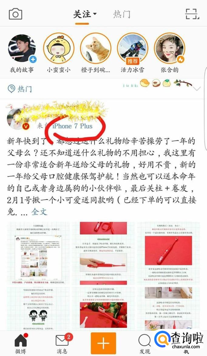 打开新浪微博,找到如图所示的一条微博,点击这样的一条小尾巴。