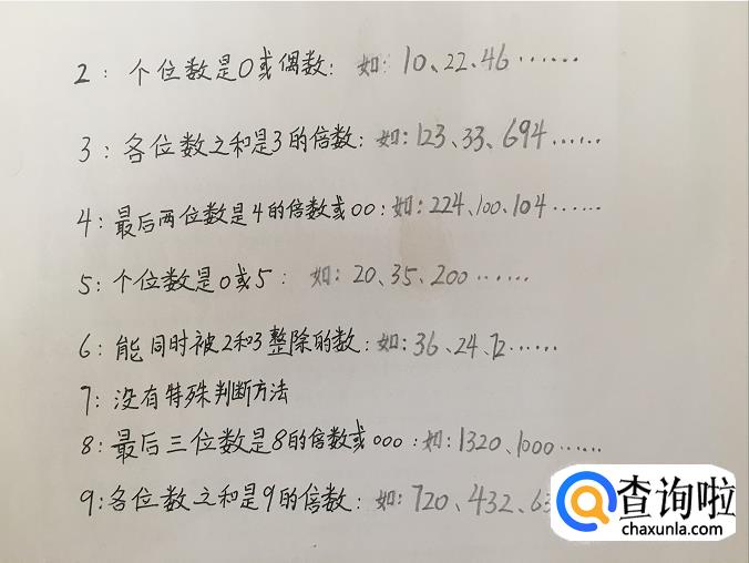 最后附一张可以快速判断公约数2-9的方法。