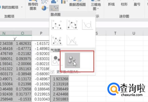 然后我们点击顶部的图表下拉菜单,在其中选择一个气泡图类型,如下图所示