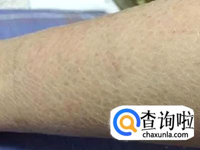 2.毛囊角化丘疹,一般出现在上臂和大腿的伸侧,有时候颊部也会有。轻的时候看上去就是毛孔粗一些,每一个毛孔就是一个小点,严重的话这些点会变得很明显,如果连成一片出现,看起来就会象锉刀一样。