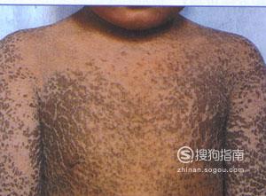严重病例在寒冷干燥季节,堆积较厚的污褐色角质鳞屑块,犹如全身披挂一副黑色的铠甲。炎热潮湿季节虽可缓解减轻。