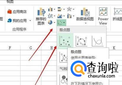 然后点击菜单栏的“插入”,点击图表项下的散点图,选择“仅带数据标记的散点图”,或者根据自己的需要选择其它图型。