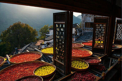 重阳节是最好的赏秋时期,中国南方还有些山区村落保留了“晒秋”特色。故而也叫晒秋节。去乡村赏民俗、看晒秋,已成为乡村旅游的一种时尚。“晒秋”是一种典型的农俗现象,具有极强的地域特色。在湖南、广西、安徽、江西等生活在山区的村民,由于地势复杂,村庄平地极少,只好利用房前屋后及自家窗台屋顶架晒、挂晒农作物,久而久之就演变成一种传统农俗现象。这种村民晾晒农作物的特殊生活方式和场景,逐步成了画家、摄影家追逐创造的素材,并塑造出诗意般的“晒秋”称呼。