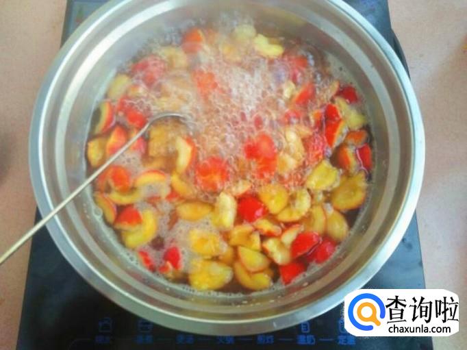 山楂放进去之后,先用大火烧开,然后小火慢慢的煮,注意一小会儿就要搅动一下,不然粘在锅底就不好了。
