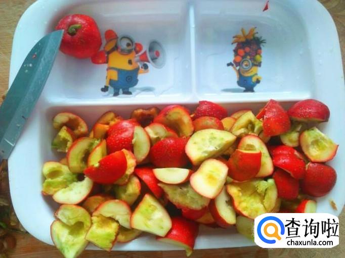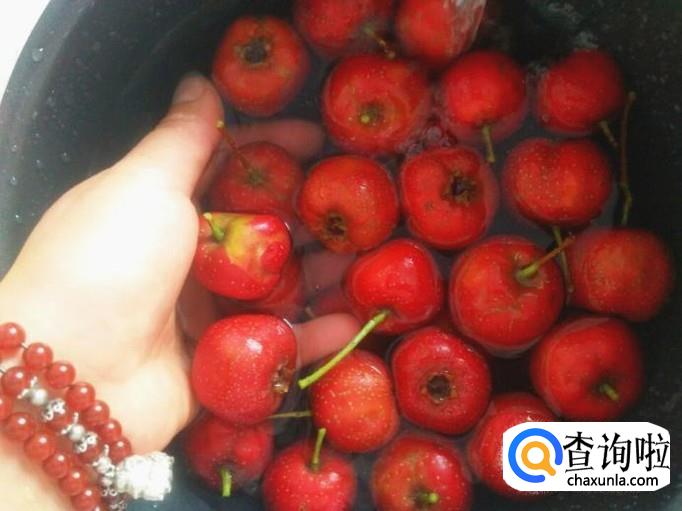 山楂清洗干净之后,取出来控控水分。