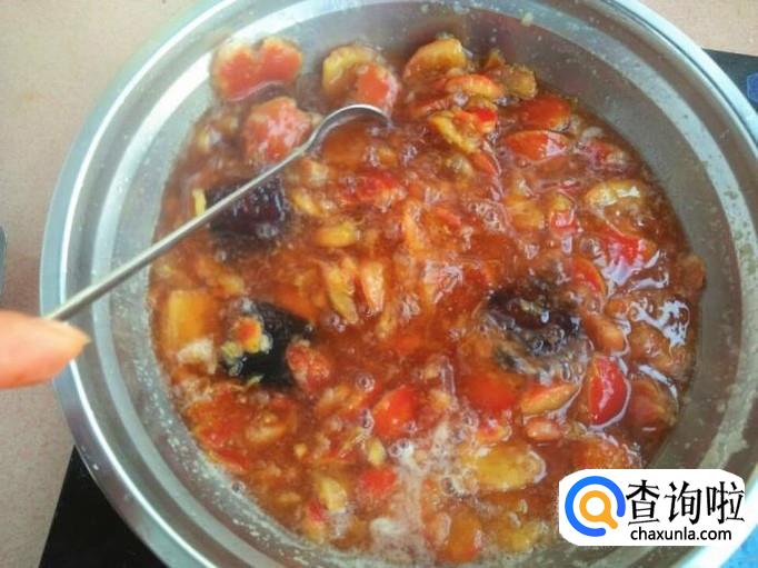 当红糖全部融化之后,山楂也已经熬制的非常粘稠了,关火放凉。