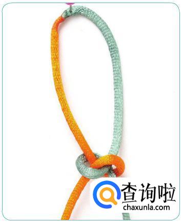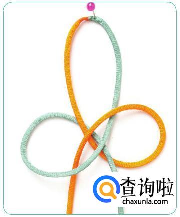 先蓝线再橘线分别绕一个圈,后橘线从蓝线中穿出来,蓝线从橘线中穿出。
