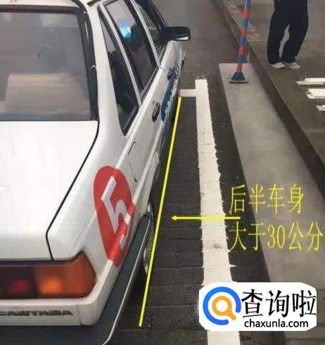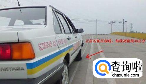 右后视镜(尤其适用于拉直线和上坡起步):从右后视镜看右前门把手,与边线相切时,距离在30公分左右。