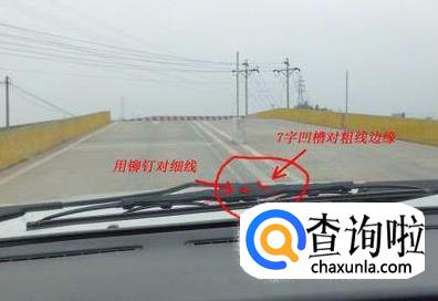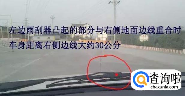 用左雨刷器凸起点对边缘线,眼睛看着雨刮最高点与边缘线重合走,就可以了,如果雨刮最高点进了边缘线就有可能压线。