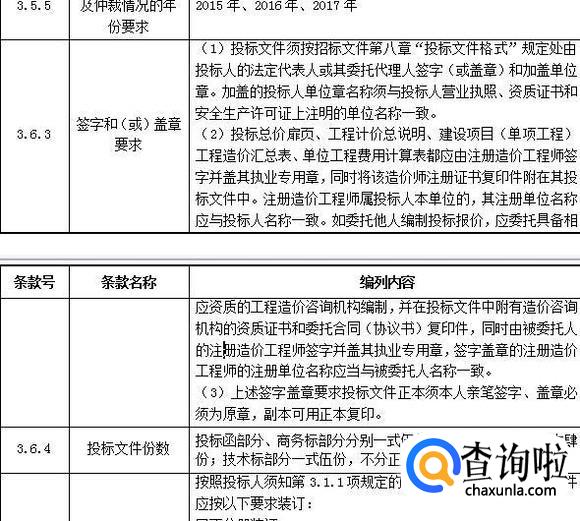 然后进入第二章,在第二章投标人须知前附表里面可以更加详细的查看关于本招标文件的相关内容,如:项目的相关内容、签字盖章要求、投标文件份数、装订要求、开标时间及地点等。