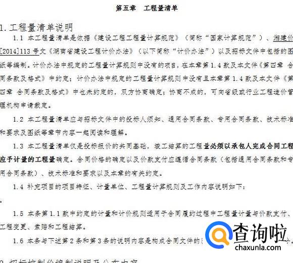 第五章工程量清单主要是针对投标报价的一些相关要求,第六章的图纸用于投标单位更好的了解项目的具体情况。