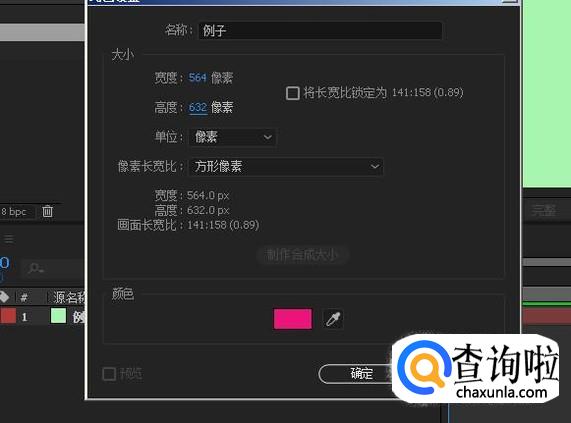 接着,按下CTRL+Y,调出新建固态层的面板。然后,设置固态层的参数。如图所示。