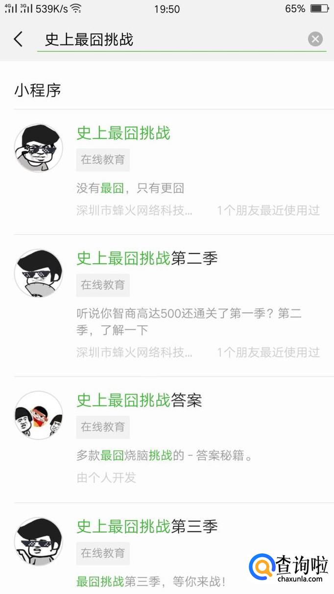 首先进入微信,直接搜索“最囧挑战”,找到要玩的这款游戏。