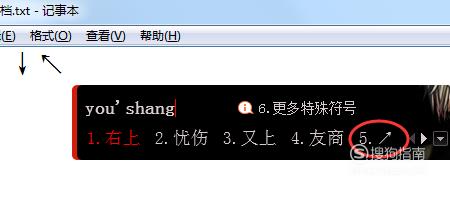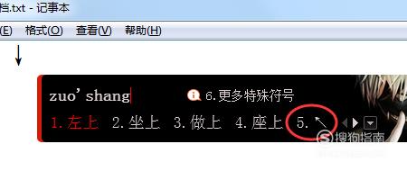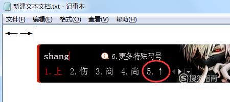 输入“zuoshang”,选择对应符号即可,如图所示; - 07
