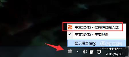 首先点击电脑左面右下角如图所示的图标,将输入法切换成【搜狗输入法】;