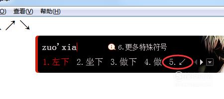 输入“zuoxia”,选择对应符号即可,如图所示; - 010