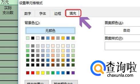 最后我们点击该对话框右下角的“格式”,然后在弹出的设置单元格格式对话框切换到最右侧的“填充”;
