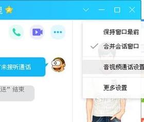 经过上两步还不行,可以在聊天窗口点击右上的箭头图标,在弹出的菜单里选“音视频通话设置”。