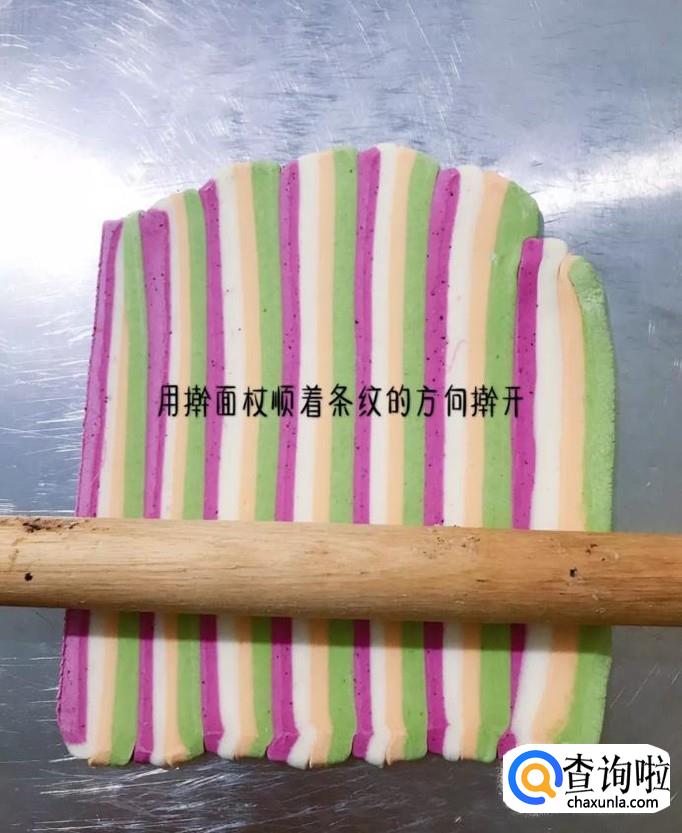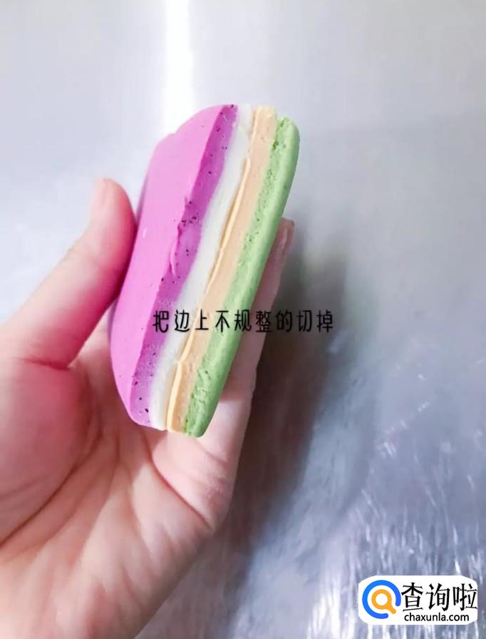 然后稍微用擀面杖压一下,并把边缘不整齐的部分切去,如下图所示。