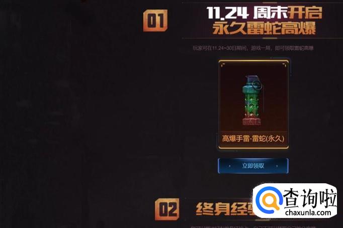 然后进入之后,就会出来11月周末活动,完成游戏一把就能领一个永久的手雷。如下图所示。