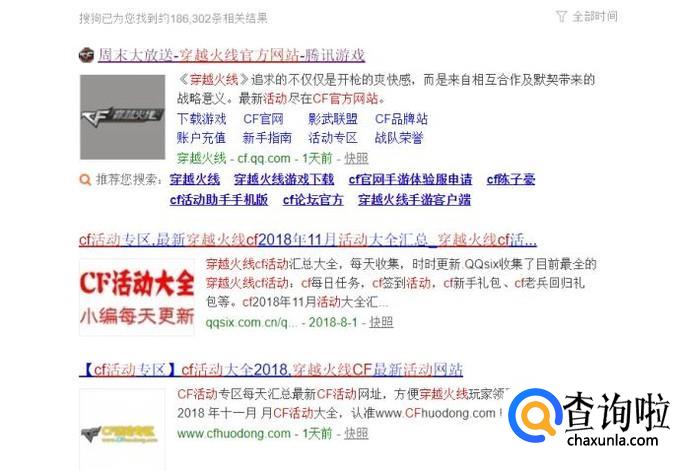 首先搜狗搜索穿越火线官网,点击第一个登陆穿越火线官网,如下图所示。