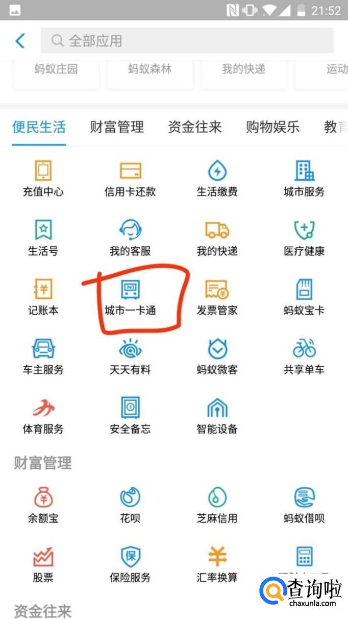 打开更多后,出现如下界面,将界面滑动到下方,找到“城市一卡通”