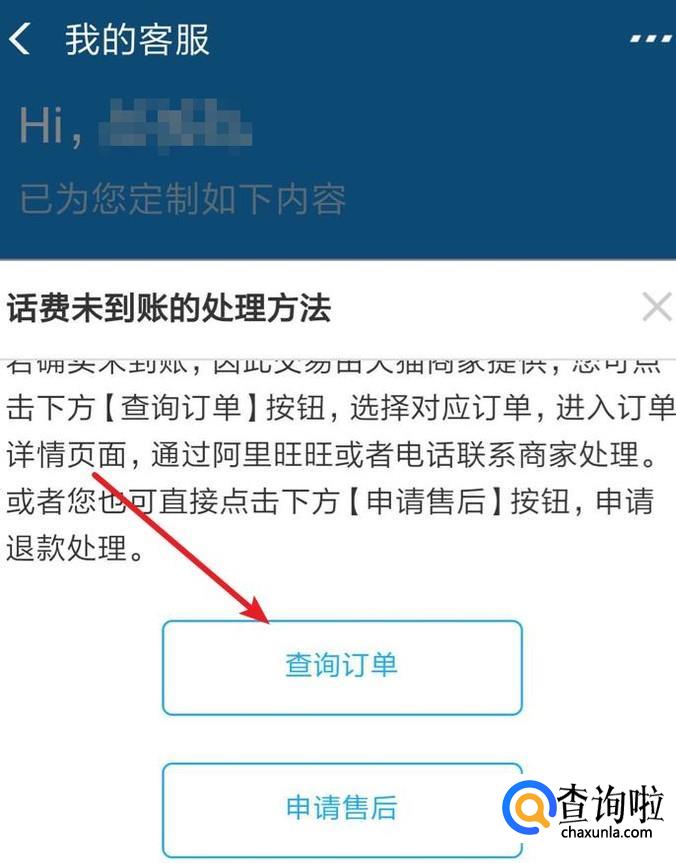 点击后会打开客服页面,点击页面上的‘话费未到账的处理方法’