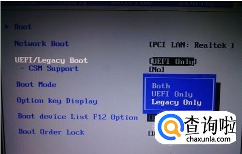 然后再次进入starup,就可以看到刚才那一项可以更改了。将这一条改为legacy ONLY。