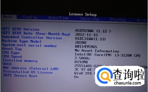 开机启动按F2进入BIOS,进入BIOS主页面