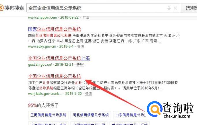 进入之后,搜索“全国企业信用信息公示系统”,点击并进入,如图所示。