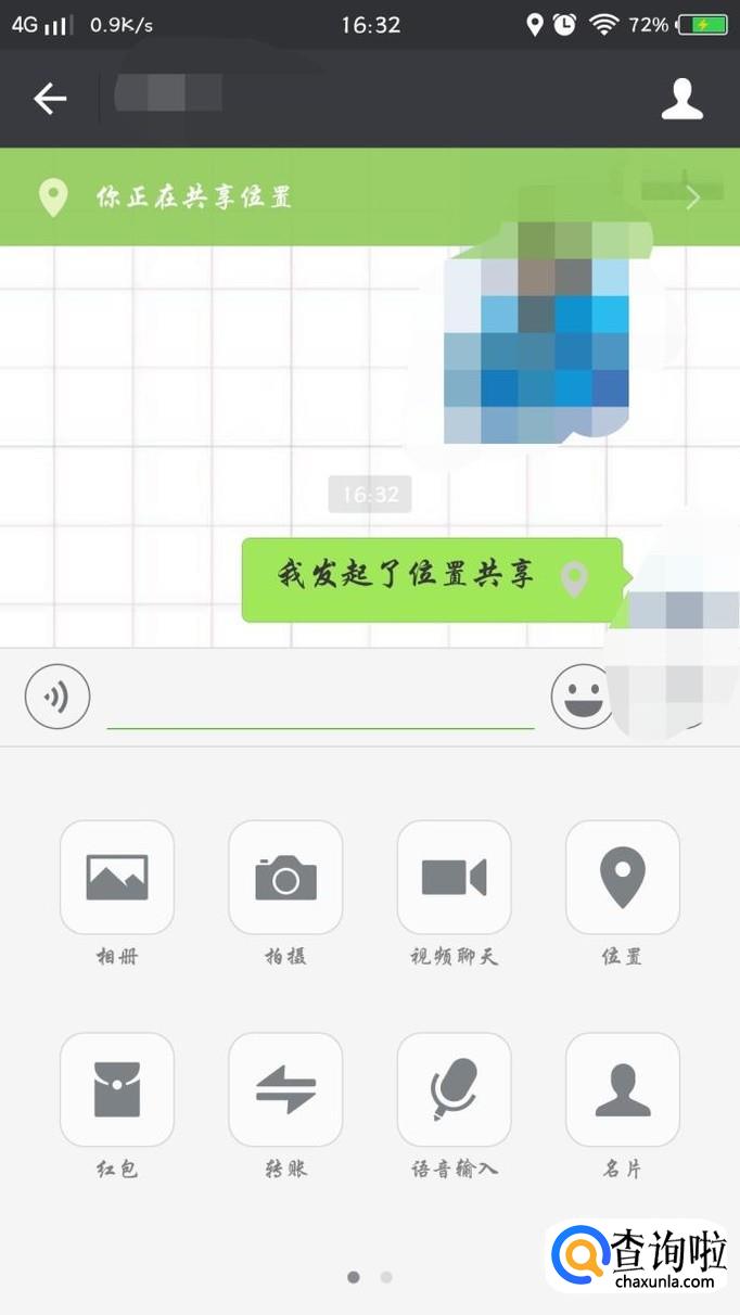 将微信调整到和需要位置共享的人的聊天界面。
