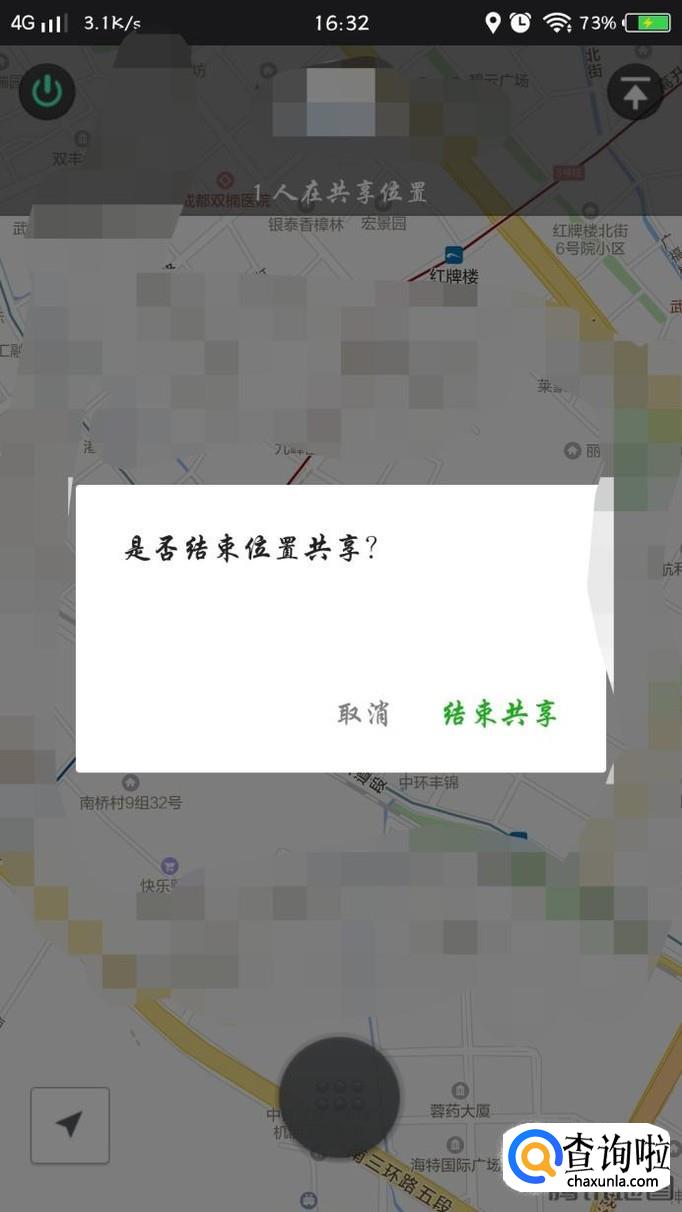 然后就会显示你一个人在共享实时位置,对方可以进入。