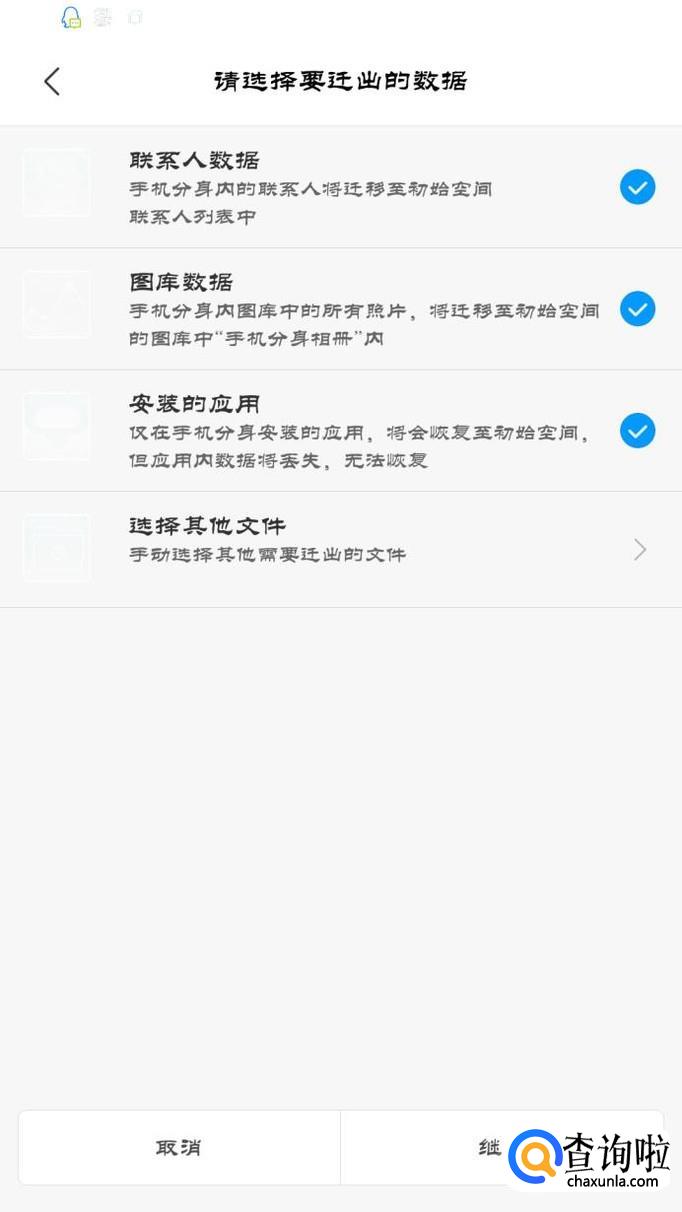 原始空间里面的数据怎么迁移到分身空间里面来?进入手机的设置,和原始空间打开分身空间一样的方法,在"手机分身"设置中可以看到有"数据迁移"选项,在这里可以选择将文件,照片,联系人等选择导出到原始空间,也可以选择把原始空间的数据导入到分身空间中来,以"冰箱"这个APP为例,可以选择从原始空间导入过来,也能选择在两个空间并存,并且不会占用额外的安装内存。