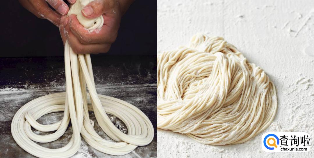 “醒”好后,面即可拉开。为了拉细,有时可先把面再捻搓成细条盘在涂油的案板上,然后拉细下入开水锅内煮,待煮熟捞出放在凉开水中过一下,使其具有韧劲,不粘糊,就可盛入盘内拌以炒好的菜,并放入醋、辣子食用。