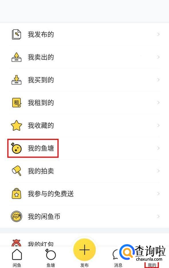 打开闲鱼APP,在“我的”页面,点击“我的鱼塘”;