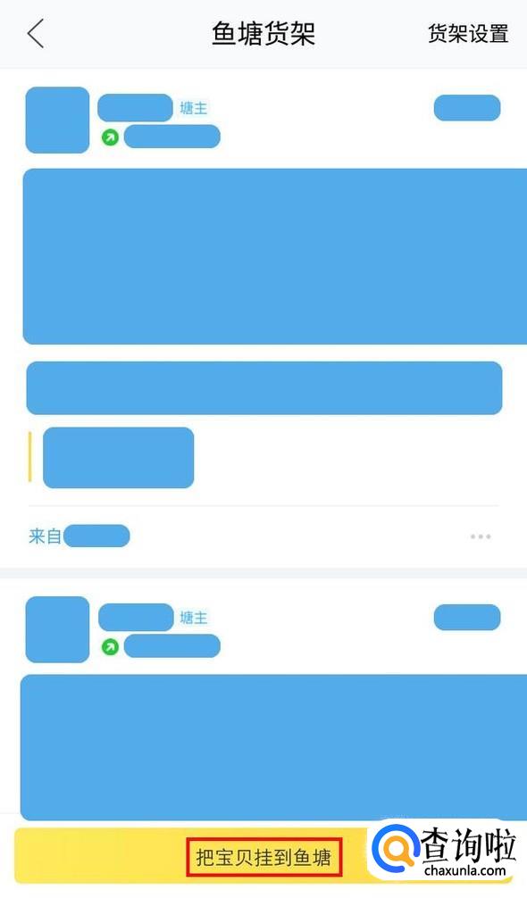 进入宝贝列表,选择需要挂到鱼塘的宝贝,点击挂到鱼塘就可以了;