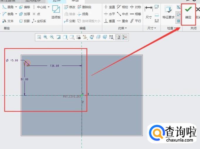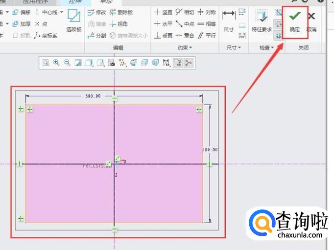 进入草绘界面后,绘制一个长方形,最后点击“确定”即可,如图所示。