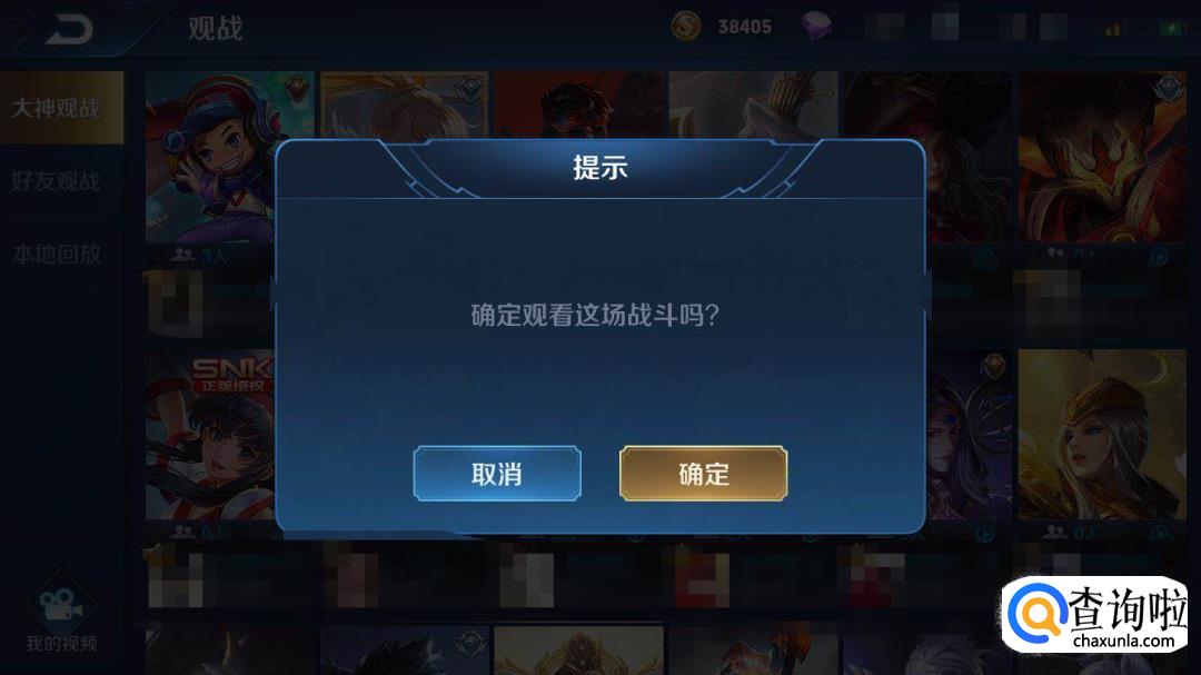 此时点击该视频,会弹出一个确认界面,点击确定就可以直接看了,被推荐到大神观战的人一般都是技术好段位高的。