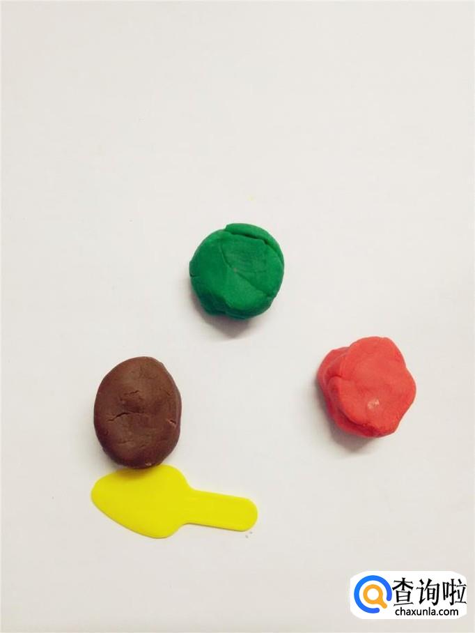 准备红、绿、棕三种颜色的橡皮泥和小刀。