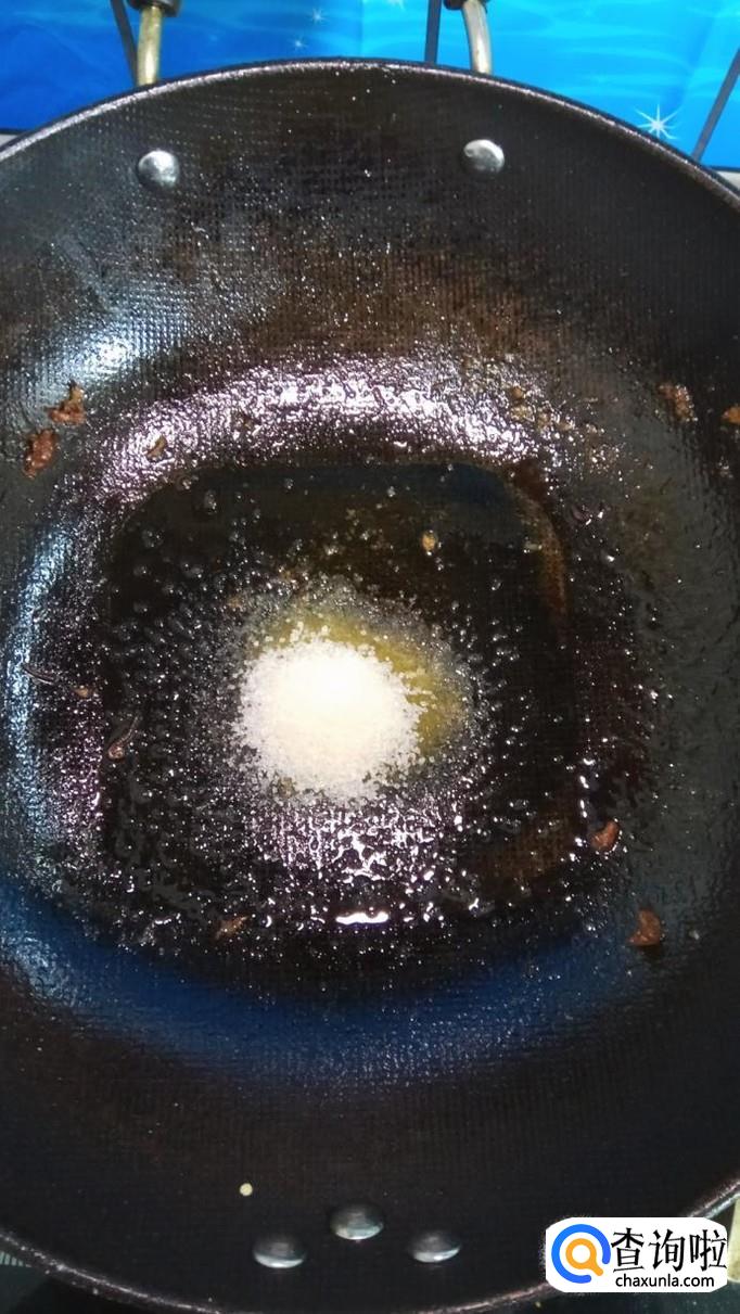炒锅中放入适量白砂糖和清水,白砂糖和水的比例是2:1,小火慢慢熬,熬至大泡变成小泡,颜色发黄,开始变得粘稠,就将炸好的苹果倒入锅中,迅速翻拌均匀。