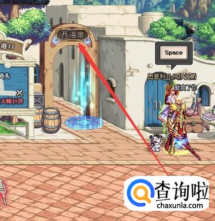走进西海岸门后往右边走会看到亚贝罗NPC,如图
