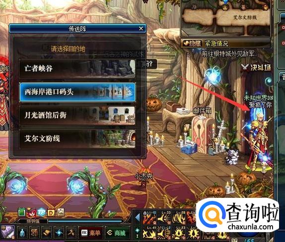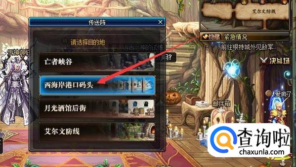 走进传送阵后会弹出一个选择目的地的功能,我们选择西海岸港口码头地图,如图